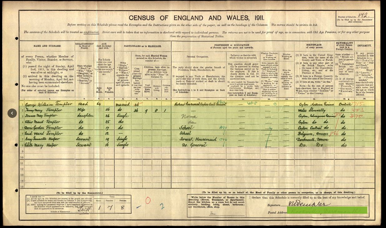 She married George William Templer in Kegalle, Sri Lanka when she was 21. She had her first two children back in the UK. Ida was born in Kandy in 1879.