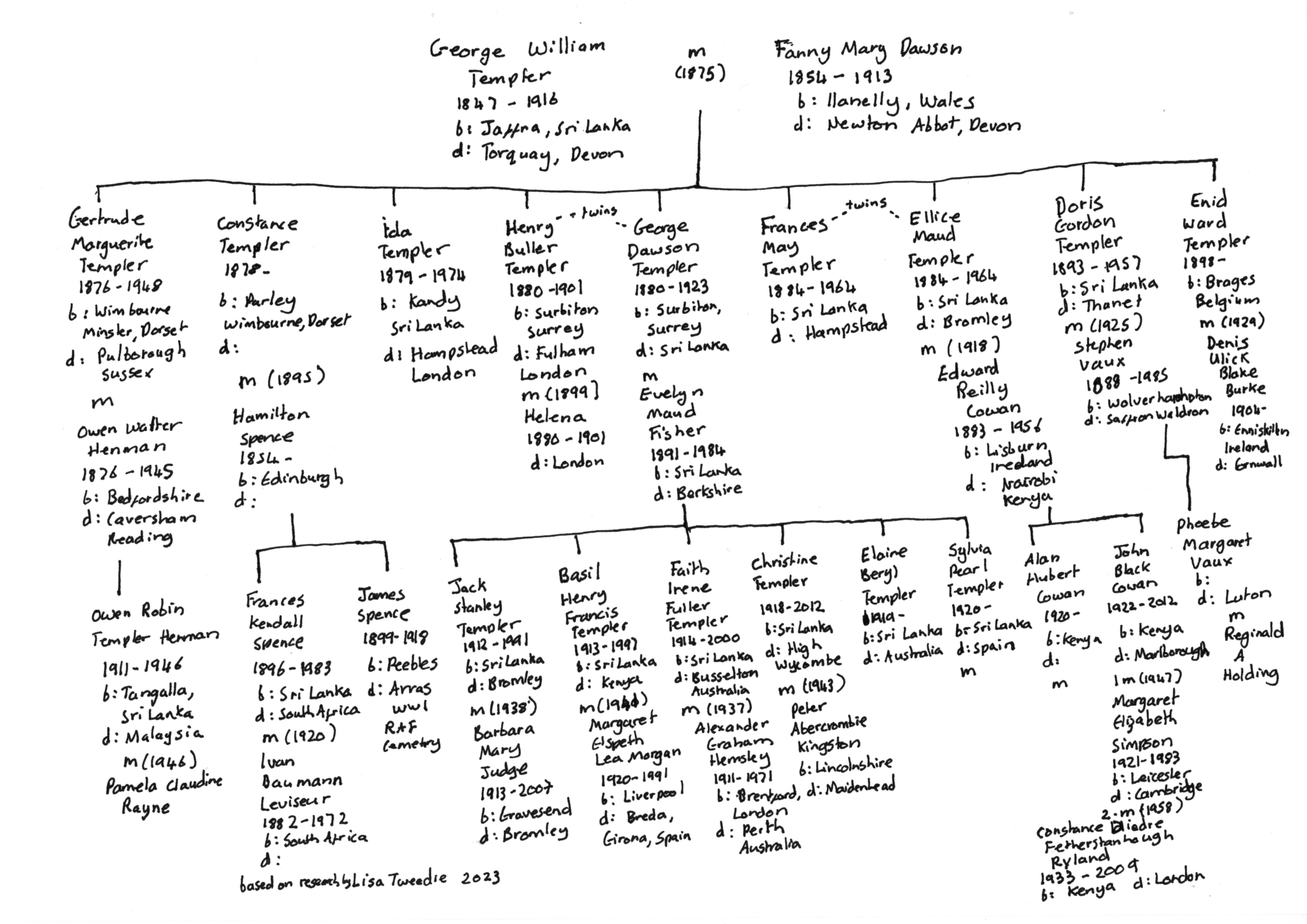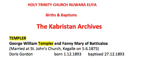 George William Templer was born in Sri Lanka. His father Henry Templer came to Sri Lanka aged 16 and worked in the Ceylon Civil Service in various roles until his untimely death aged 28.