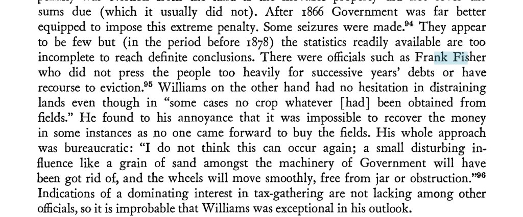 An early report by Fisher in 1870 aged 20 relating to the relations between Planters and the local population which might have lead to the Game Ordinance leglisation below.