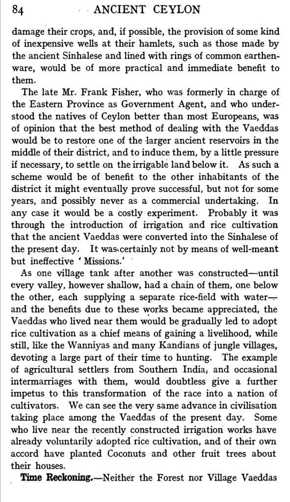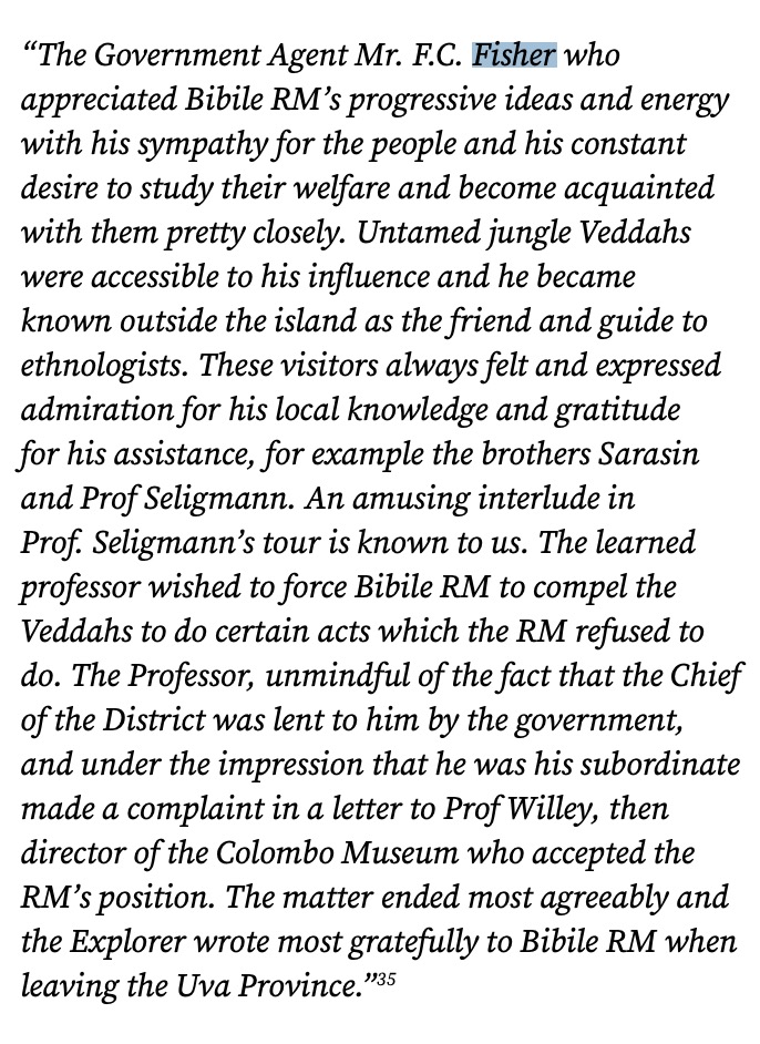 Frank was involved in developing irrigation schemes around Okkampittiya. These were heralded as something of a success. He and Bibile RM one of the leaders of the Veddah population had a mutual respect.