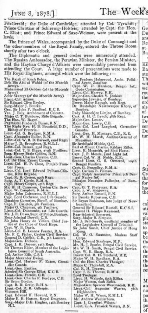 Frank Honoured in 1878 – Levee with the Prince of Wales