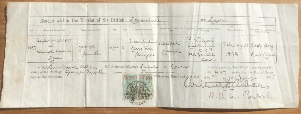 George remarried fairly quickly to Blanche. And his first son William was born and Ruby a year later. By this point George was head of the fire brigade in Cairo. Sadly he died in at home in the barracks in Alexandria aged 29. We have no record as to cause of death.