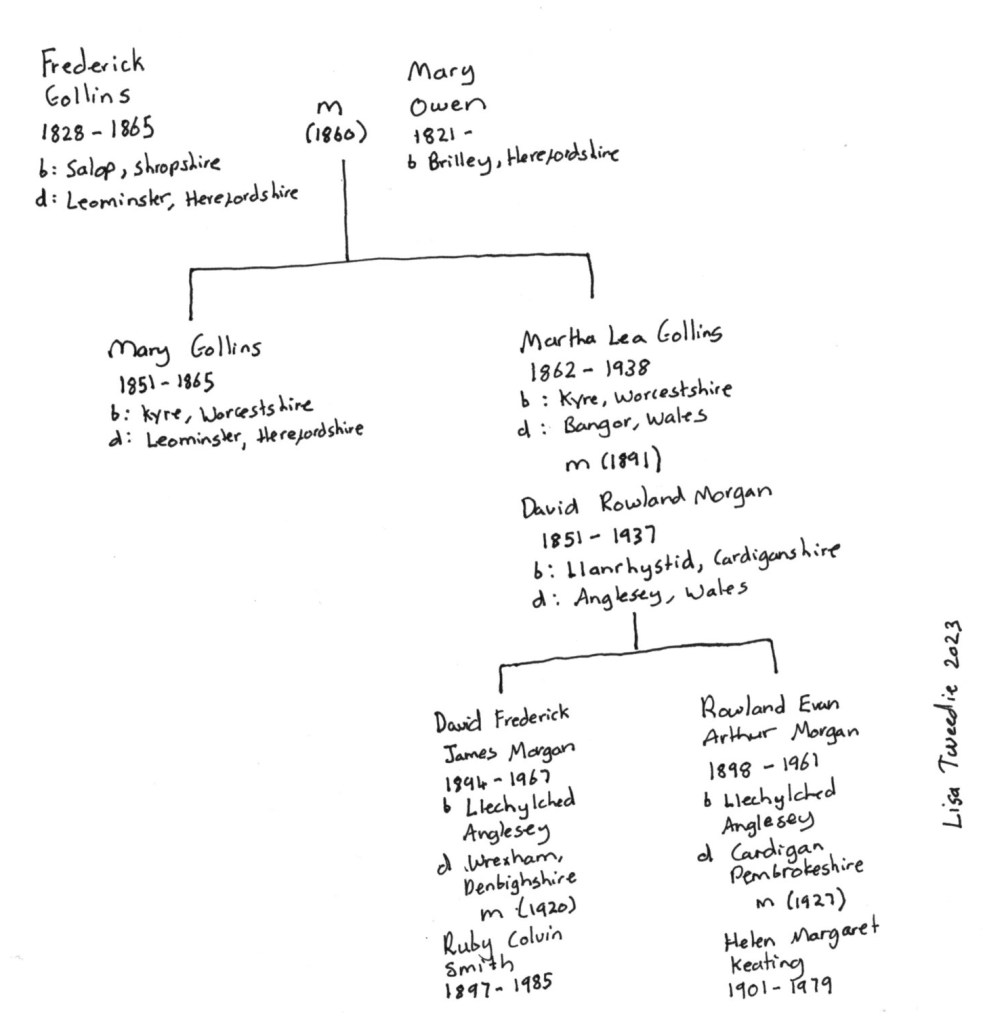 Martha Lea Gollins (1862-1938) was born in Tenbury Wells, Worcestershire to Frederick Gollins and Martha (nee Lea). She was baptised at St Mary’s Kyre park near Kyre green farm where her grandfather lived.
