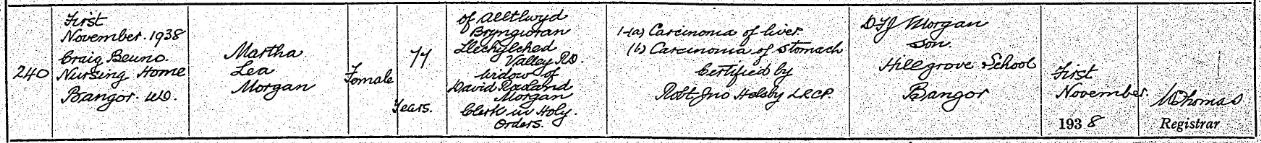 Martha and David continued living in Bryngwran after David retired moving to a small bungalow. Martha died in 1938 aged 76.