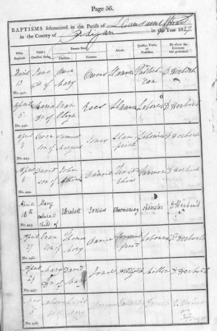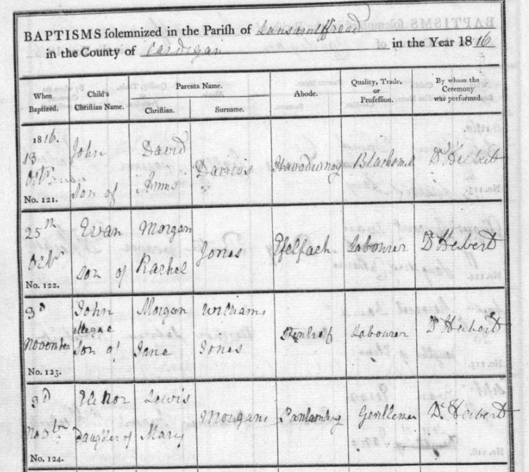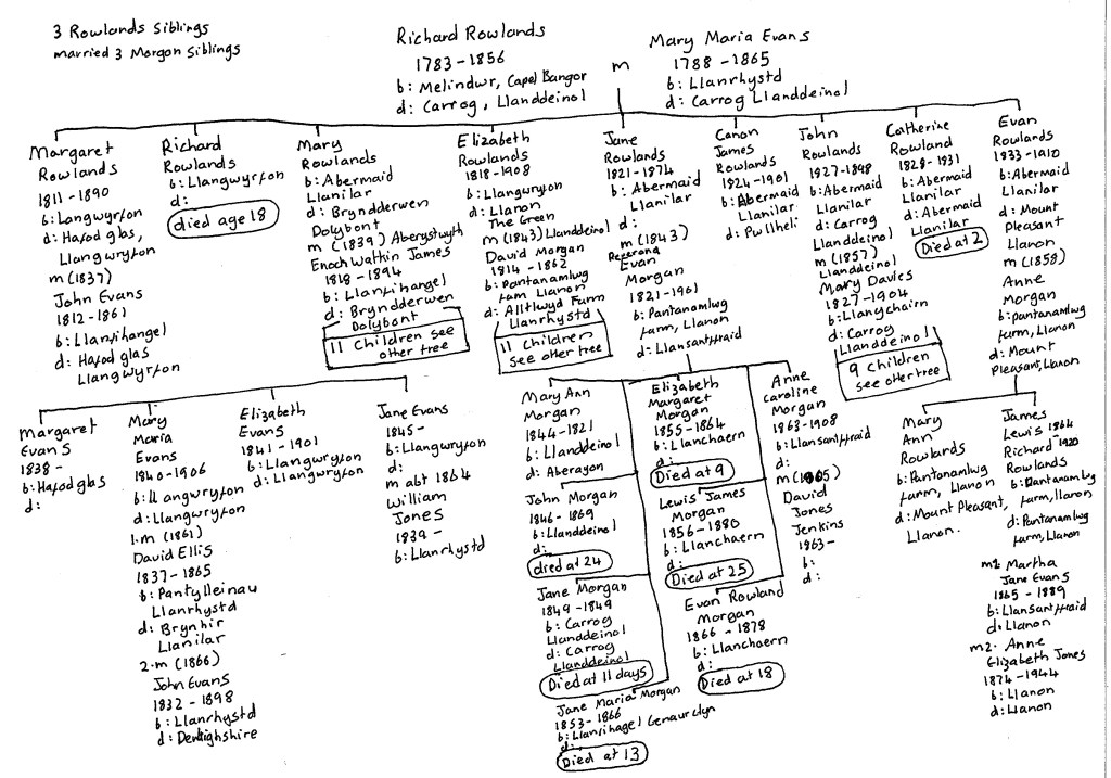 The Rowlands family came from just north of Aberystwyth and her father Richard Rowlands (b 1783) and Grandfather the Richard Rowlands (b 1745) was originally from Capel Bangor, Llanbadarn-Fawr. Her mother Mary Maria Evans came from Cnuc-y-Barcut farm, Llanrhystyd.