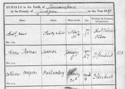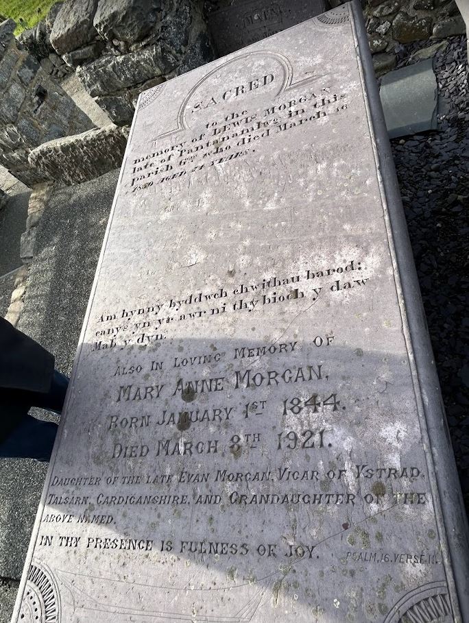 Thanks to Dydd Cross for her insights on the Rowlands family and showing me where Alltltwy farm, Llanrhystd is, taking me to the pub in Llanon and showing me St Ffraids where she herself was married. And even pointing out the family pew to me. It was good to explore the monuments outside the church together and she enlightened me that the children had probably died from TB. Dydd also showed me the formal indenture for Elizabeth’s marriage.