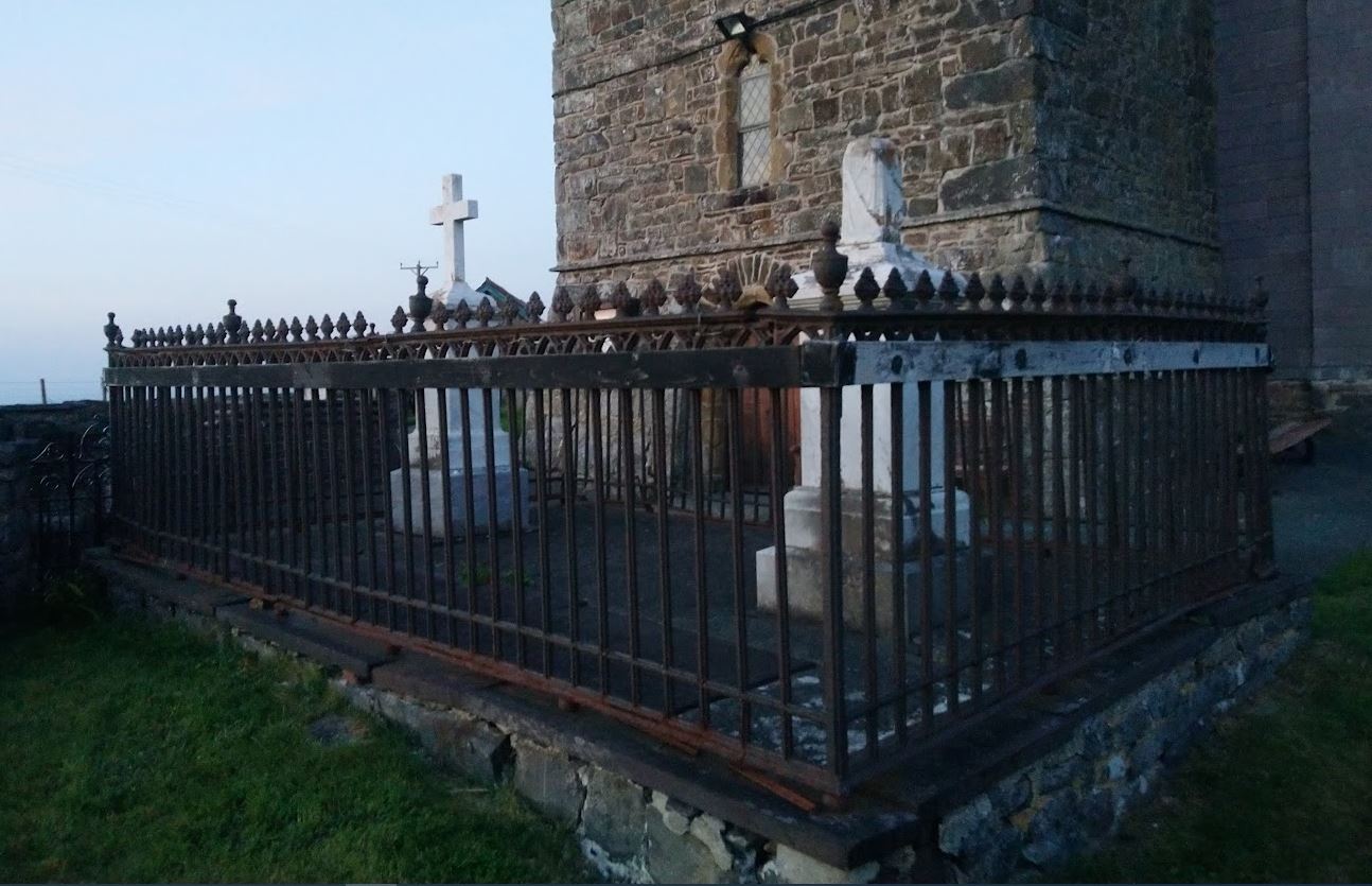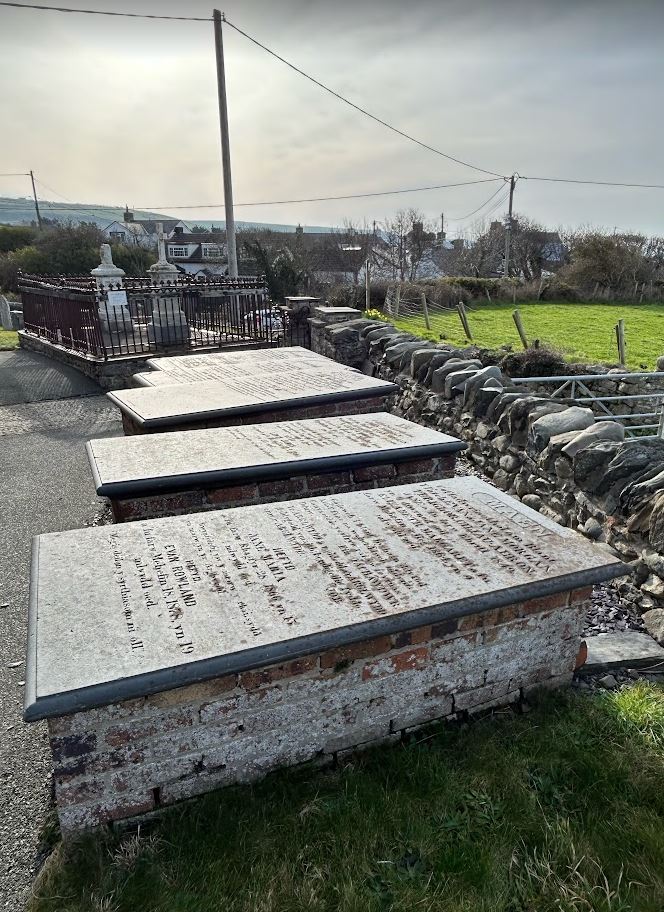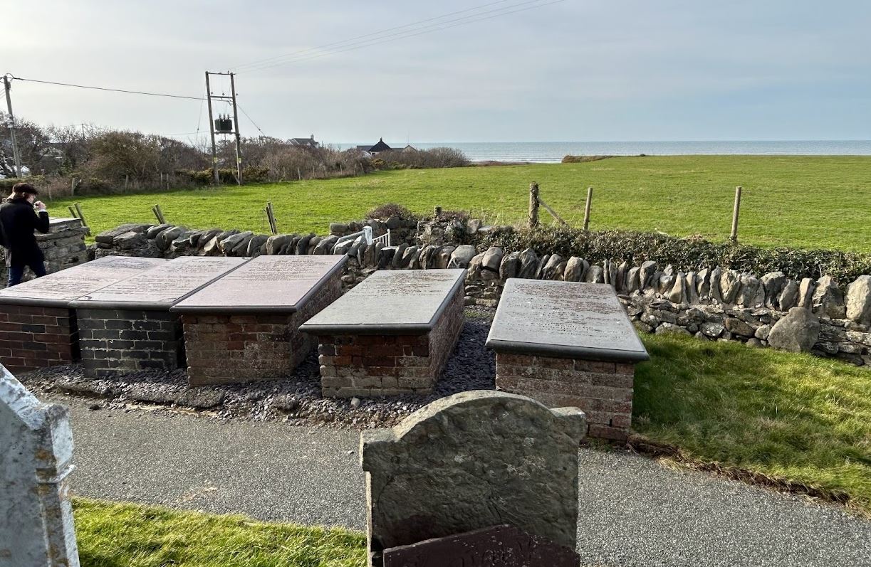 The six siblings are commemorated on two tombs looking out over the sea in front of St Ffraids church