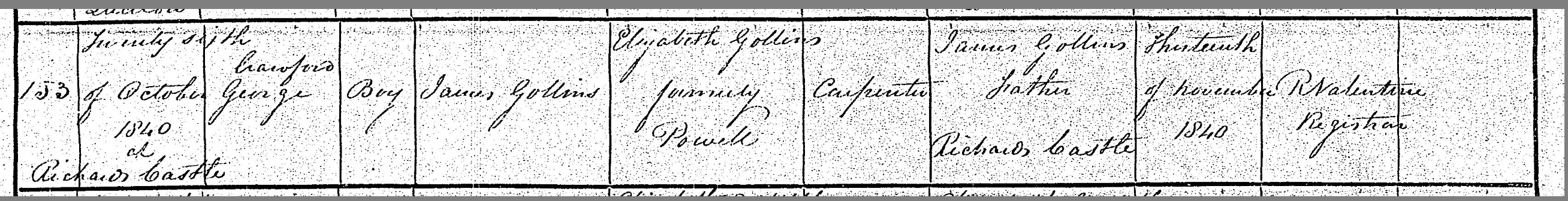 Thanks to the Phil McCurdy in the USA who has worked with me on the Gollins / Gollings line. He is a descendent of George Crawford Gollings.