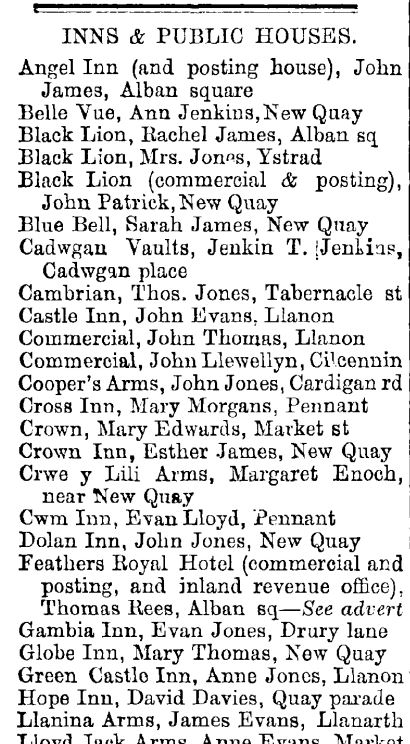 At this point Elizabeth moved out of Alltlwyd farm to “the Green” on Bridge Street, Llanon. This may be the building that was formerly “The Green Castle Inn” (which was also in Bridge Street). In which case she went back to her earlier married home.