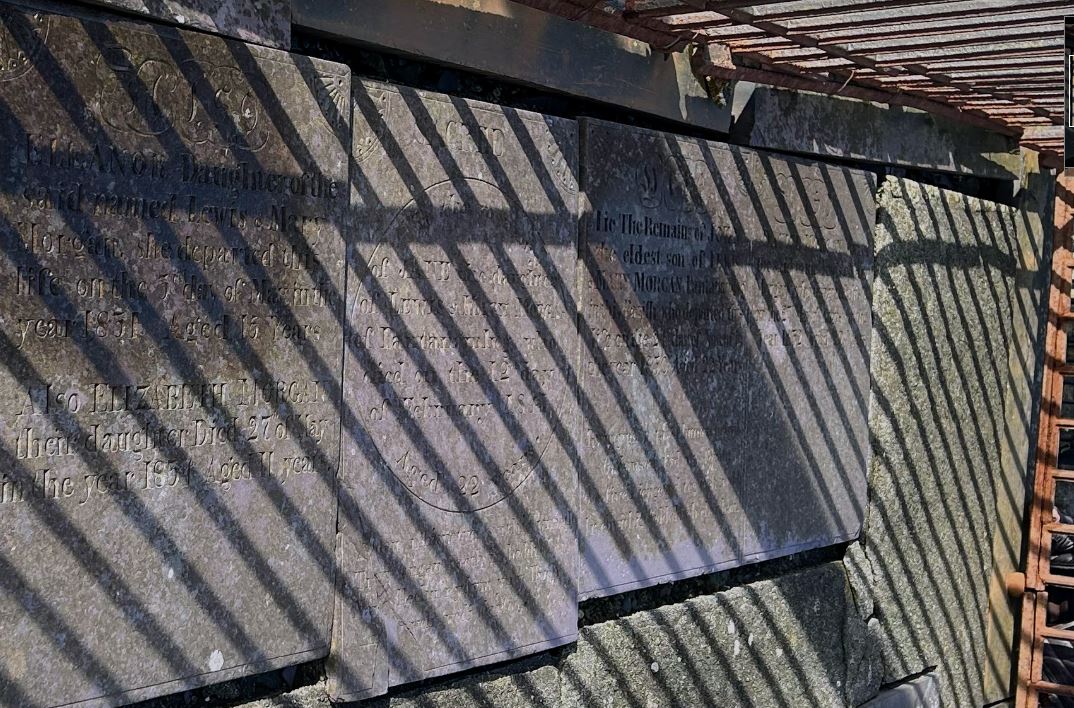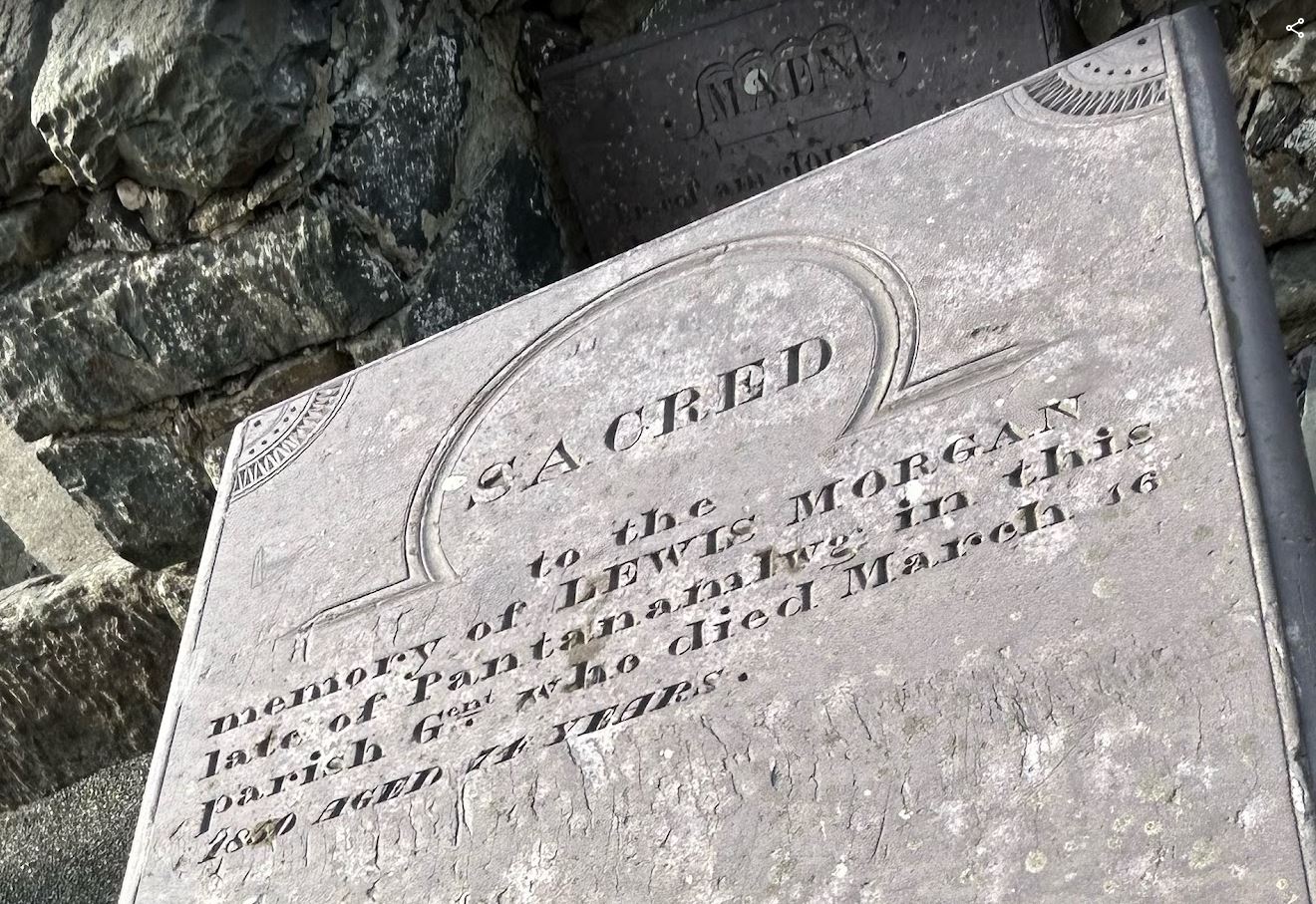 Llanon was a ship building village and generations of men became mariners here, some trading as far as South America; between 1786 and 1864 some 55 vessels were constructed in the parish. Notice the grave of Henry Harris. the parish’s last and most successful shipbuilder and on the north side of the church door, the clear outlines of ships built in this place. But it’s not all mariners, just south of the church door you can see the marble grave of David Morgan (1814-1882) and his family of Alltlwyd, a committed churchwarden and the last operator of the local Craiglas Lime Kilns which can he found along the coast towards Llanrhystud. Morgan was also the last and perhaps the only brewer in the village.