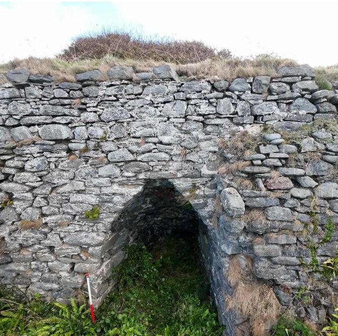 There are 130 lime kilns between Aberystwyth and Milford Haven in 40 different sites. But there are rarely 4 placed together. In fact looking at the site, historians think there were probably 6 lime kilns here – two having fallen apart. The lime was burnt to make lime used for limewash and also fertilizer for the fields. Between 12 and 14 boats from both further North and further South, brought lime here in the season, which is winter time and then the kilns would burn 24 hours a day, for months on end,