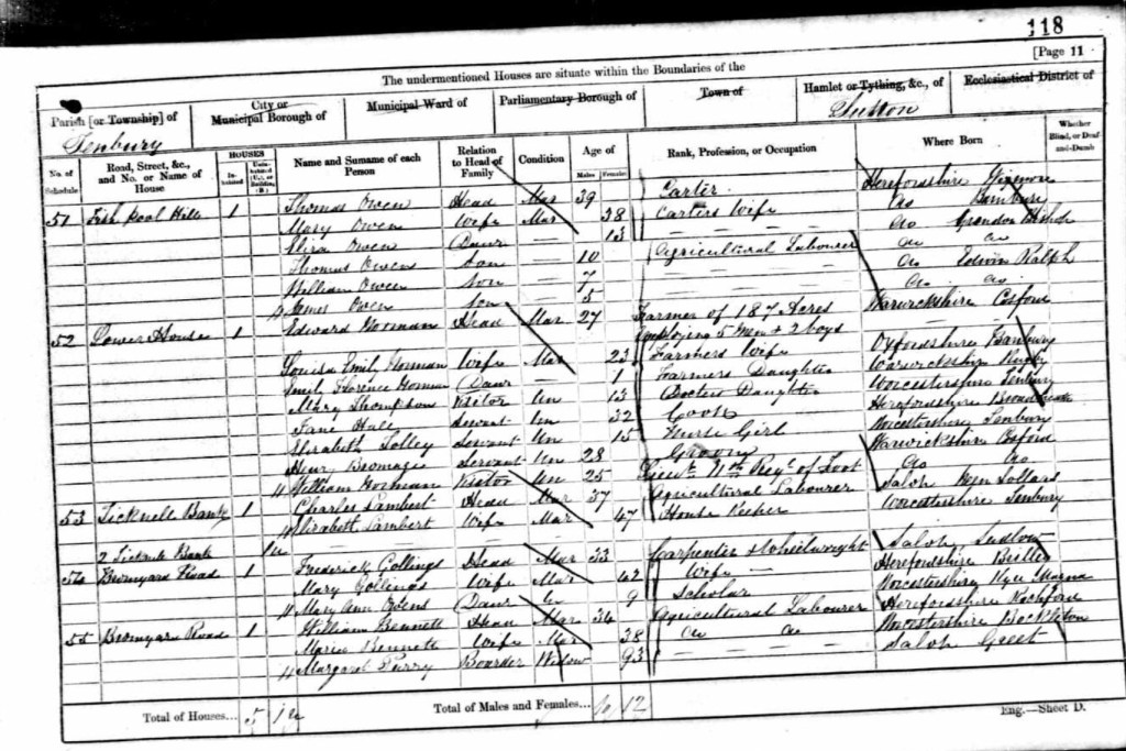 When Mary was about 20 (1841) the family moved to Romer’s farm just across the border in Brockleton, Worcestershire. By this point her father James Owen is described as a farmer.