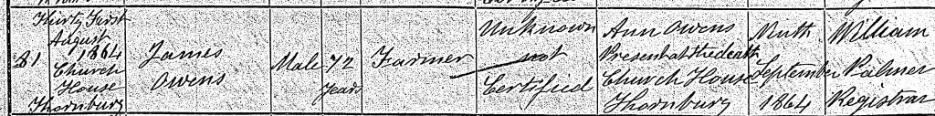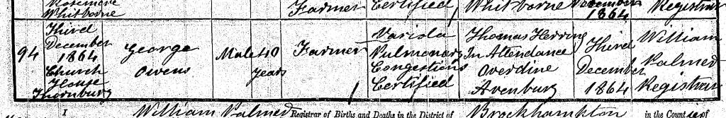 The next two years are not good ones for Mary. Her brother George Owens and father James Owens both die in 1864 at George’s home, Church house in Thornbury.