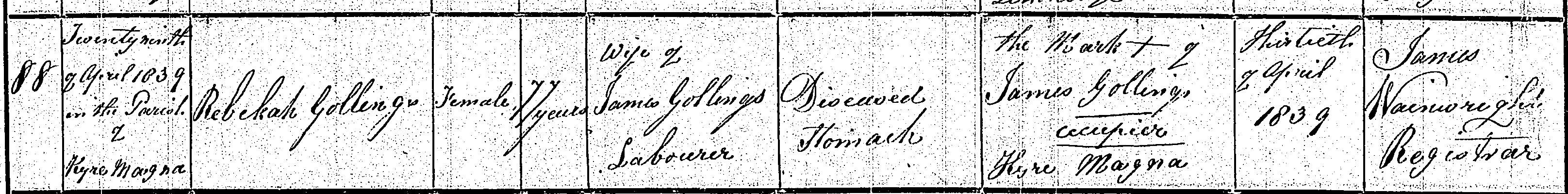 Fredricks father James Gollins died in 1860 in Kingswinford near Stourbridge. There is no mention of he fact that he was a widow or even of Elizabeth. It mentions that a Charlotte Downing was present at his death. I have tried to see if this is his daughter Charlotte who I have not managed to trace after 1841 but can find no marriage to a Downing.