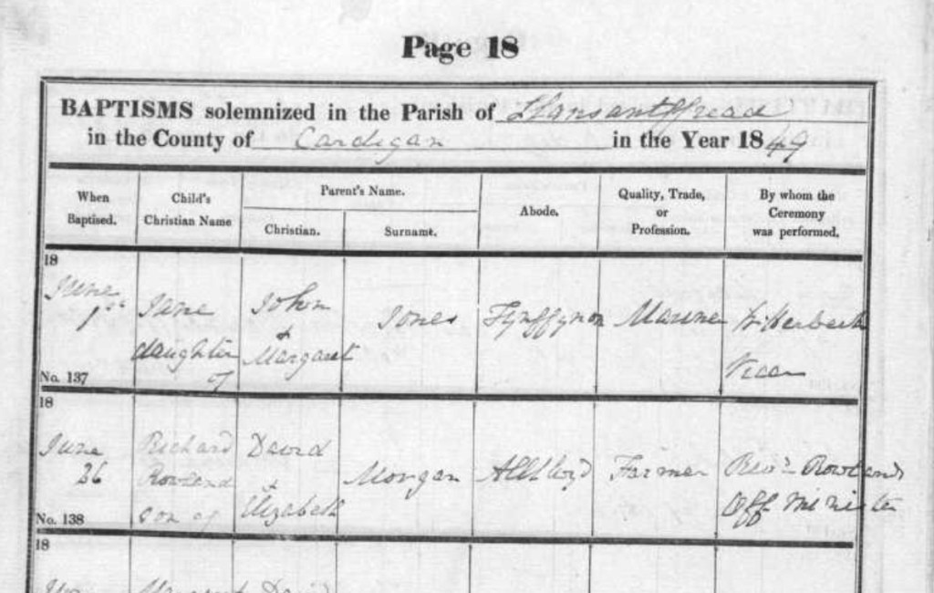 By the time their 4th child Richard was born in 1849 Elizabeth and Richard had rented Alltlwyd farm, which is set just above the road from Llanon to Llanrhystyd (on the way to Aberystwyth). They lived their for the rest of their married life.