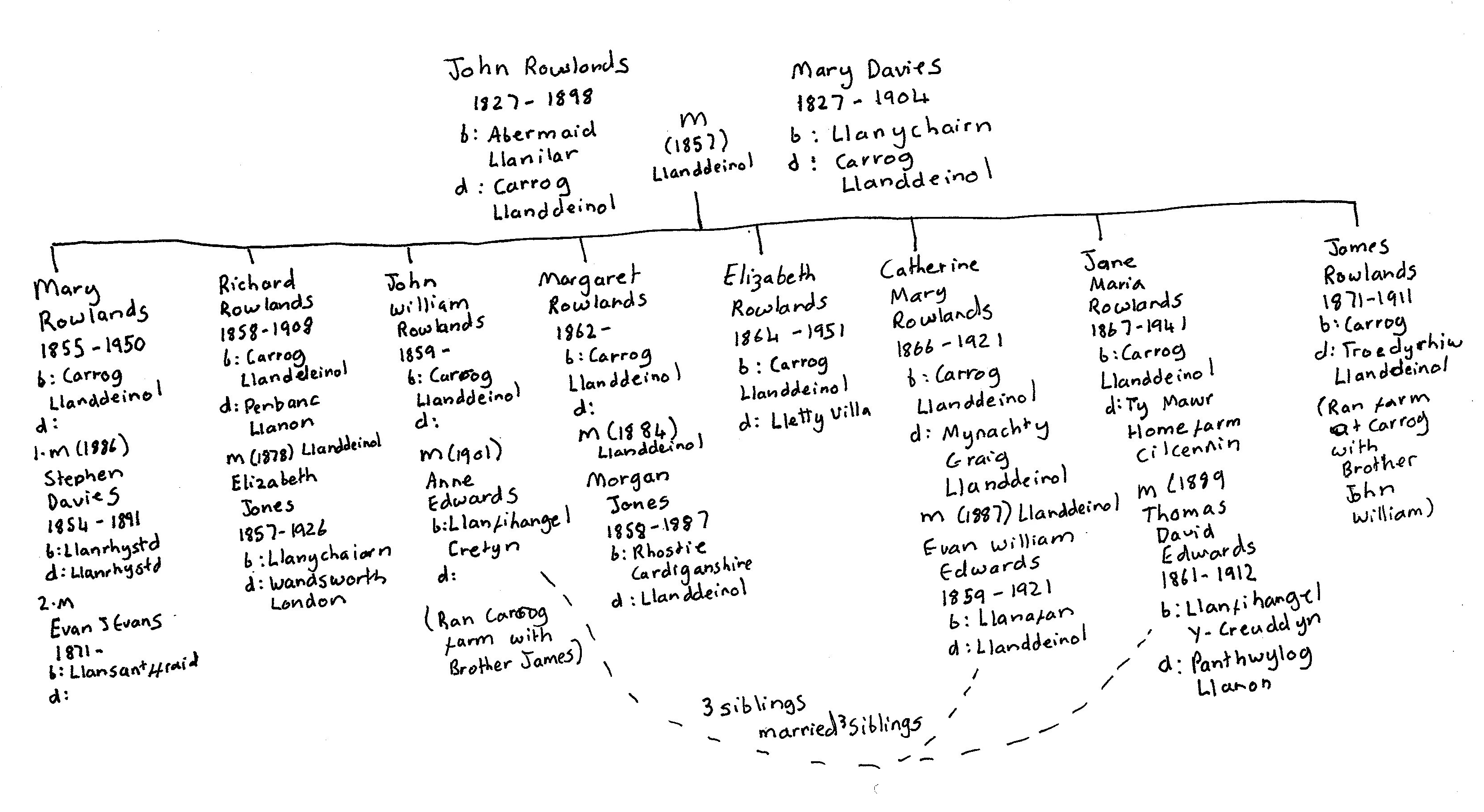 In about 1828 the family moved to another farm Carrog, in Llanddienol. This farm was to be a focus for the Rowland family for many generations to come.