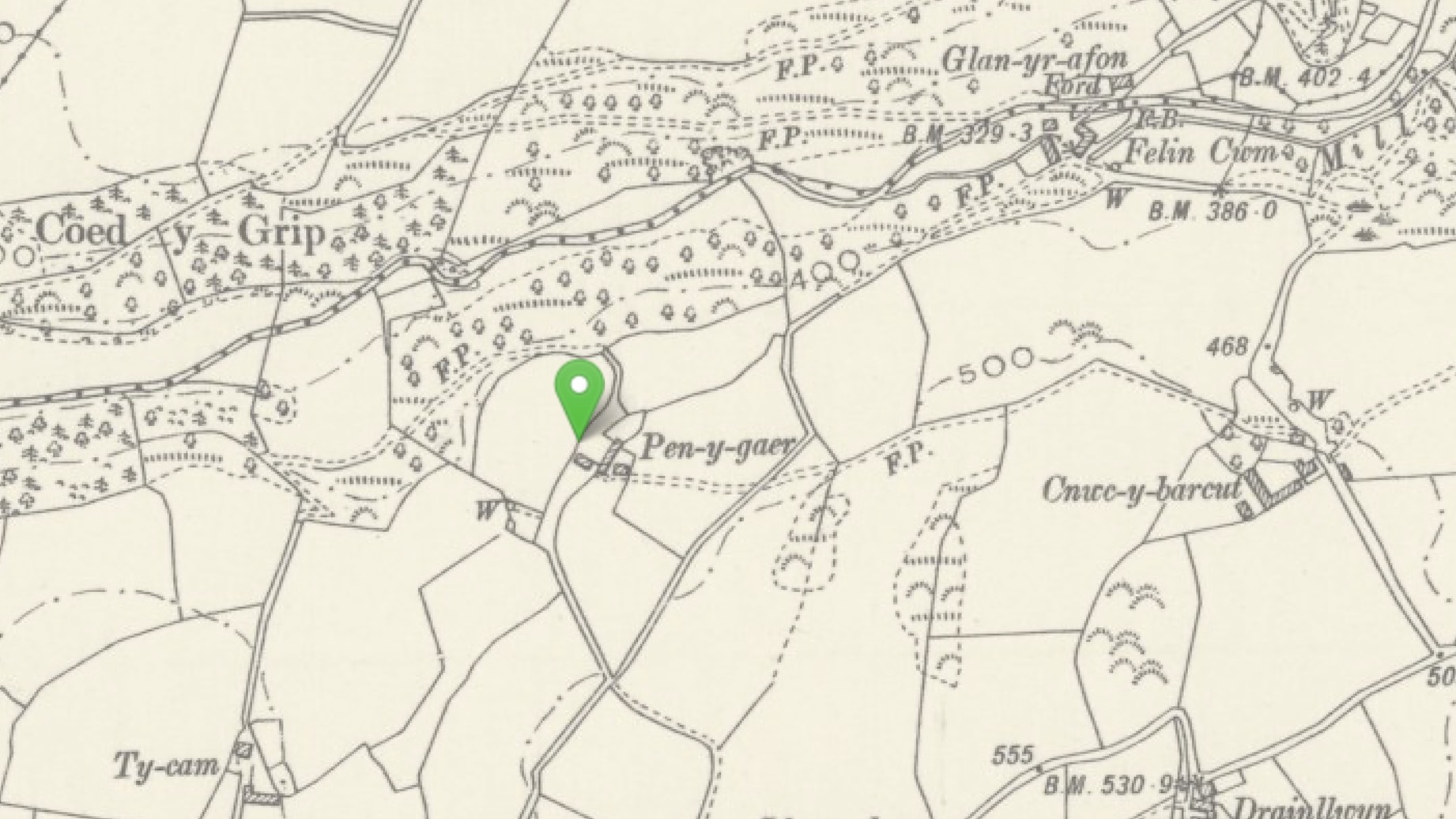 the time their 3rd child Mary was born they moved to Abermaid, Llanair. There is still a house on this site but it was built in the 1870’s after the family had moved away. The house would have been set close to a river with a hill behind it. This is the place that Elizabeth spent most of her childhood.
