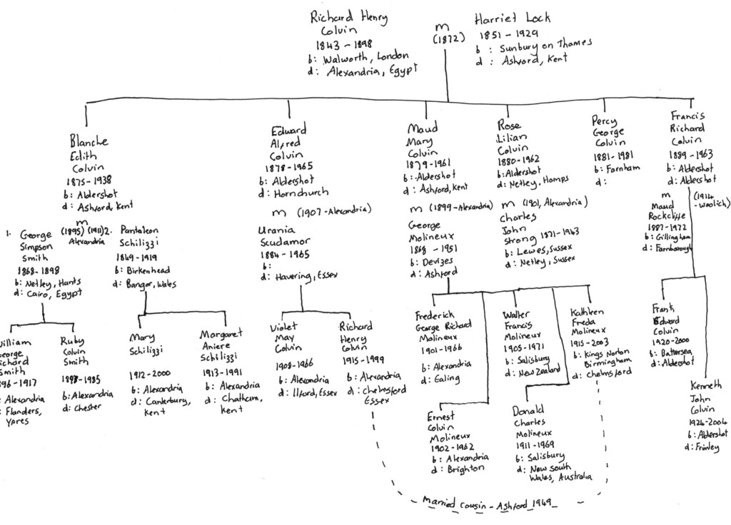 Again they lived in the barracks in a large British Army community. Four of her children married into other service families in Egypt. Richard was tragically lost in Egypt in 1898.
