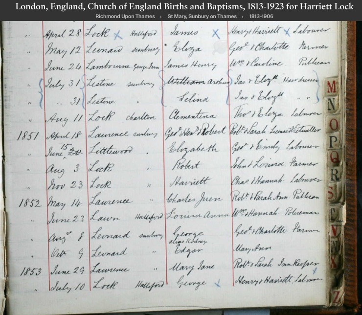 Thanks to the five descendents of Harriet Lock who have done DNA tests who have enabled this line to be confirmed