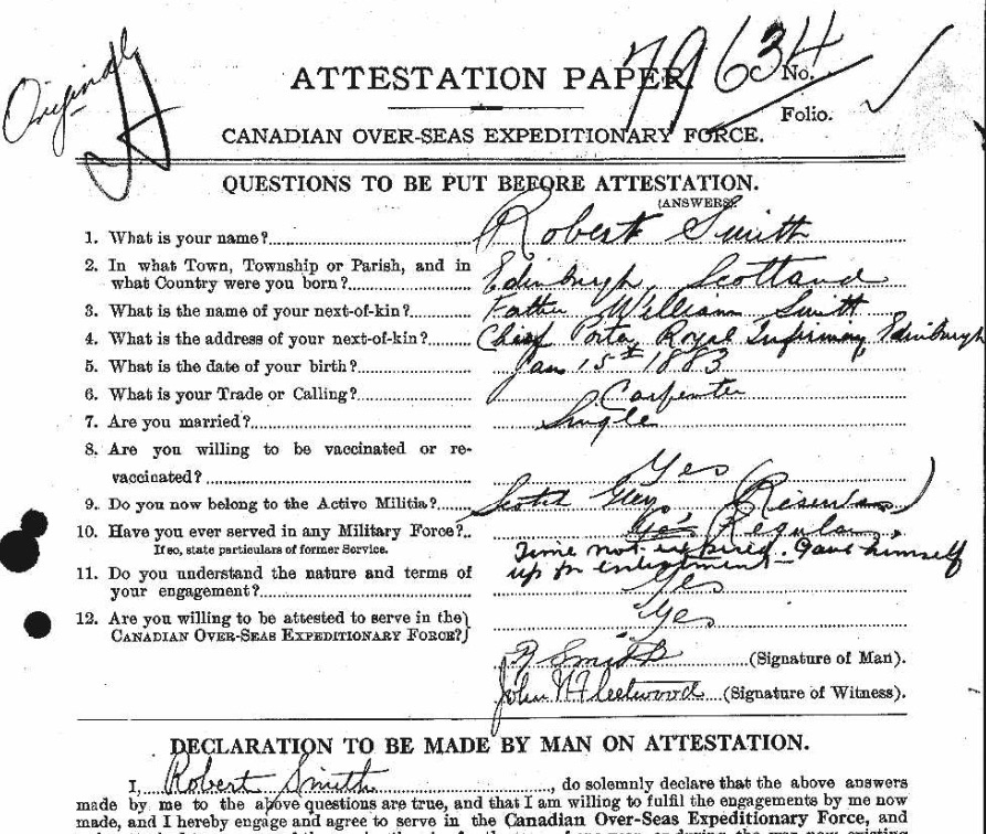 Two other sons immigrated abroad. Charles Frederick married Jane Morrison in Edinburgh 1897 and was in Blackburn Australia by the time he died in 1937. Robert Rutland Smith moved to Canada and fought with the Canadian Army in France in WW1. He survived the war.