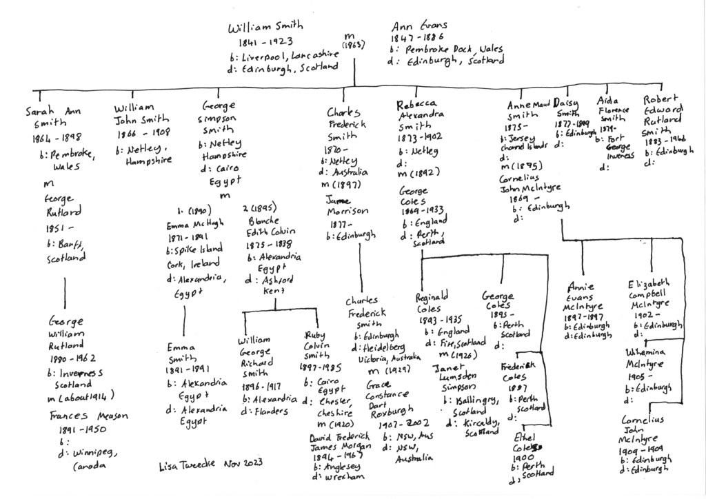 In 1921 William is recorded as living with his daughter Annie McIntyre (nee Smith) and family in the Portobello area of Edinburgh. Annie and possibly his daughter Florence were the only two left of the direct family in Edinburgh in his latter years.