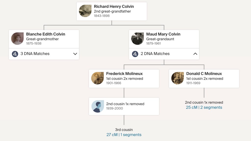 Thanks to the five descendents of Richard Colvin who have done DNA tests who have enabled this line to be confirmed