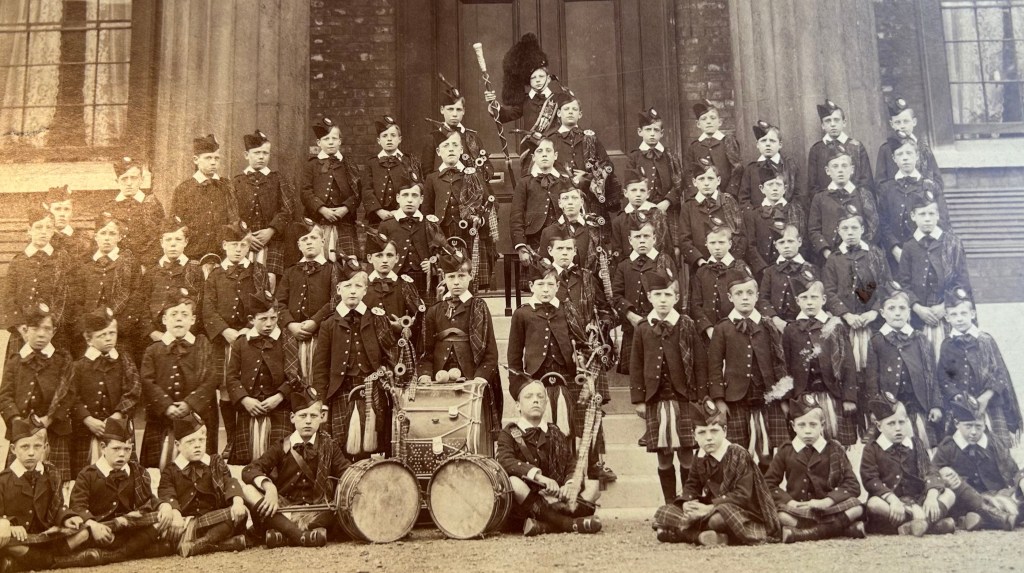 William and Ruby both went to a residential home and school for orphans of scottish servicemen in Bushey, North London known as the “Royal Caledonian Asylum”. In 1906 – Ruby was 8 and William 9. The registration records show that their previous school was at Tidworth Garrison – so presumably Blanche had worked there. Ruby’s record gives Blanche’s address as Alexandria – so it seems that she had got some sort of work out in Alexandria. The school was was steeped in Scottish culture and the kids wore tartan uniforms and marched to bagpipes.